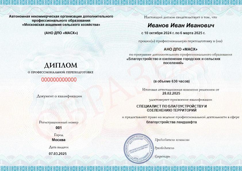 - Квалификация: Специалист по благоустройству и озеленению территорий